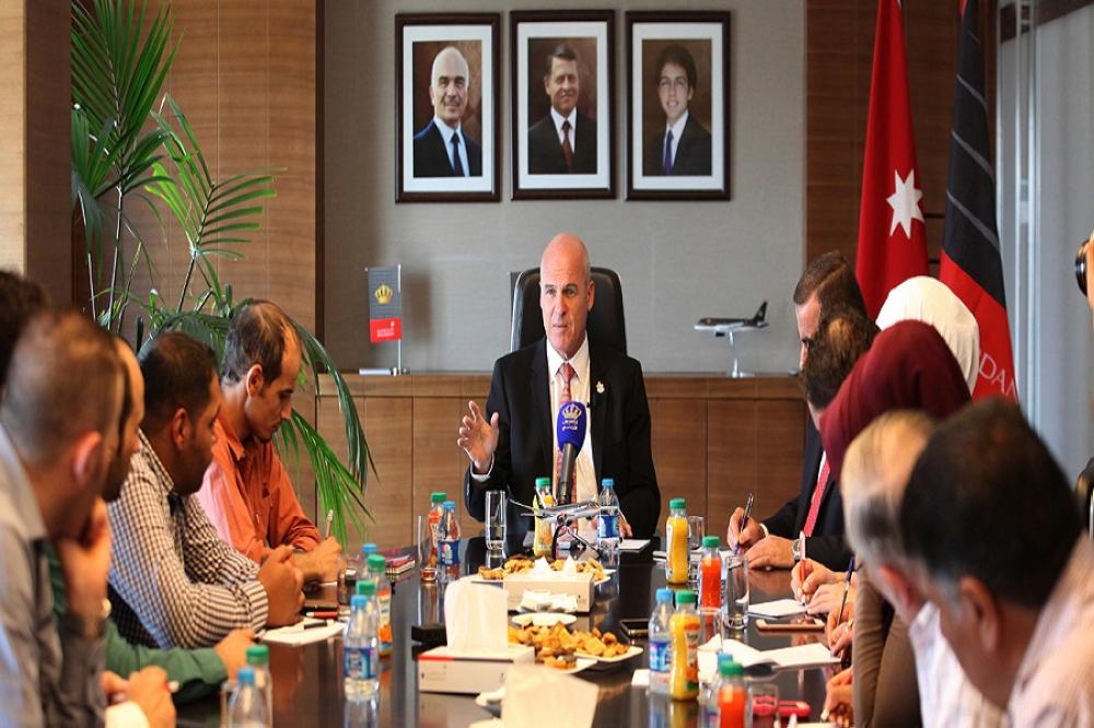 أما عن التواصل الخارجي، أكد ان الملكية تتبع سياسة الانفتاح والشفافية مع المسافرين من خلال نشر مختلف القضايا عبر وسائل الإعلام كافة، إذ تسعى ان تكون قريبة جداً من المسافرين، مبينا أن الملكية ستعمل على تعزيز علاقتها مع نقابة العاملين في النقل الجوي كشركاء وليس كمنافسين.