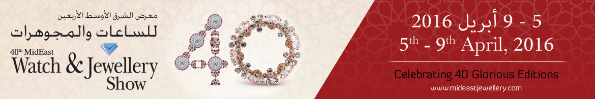 Celebrating 40 glorious editions, the MidEast Watch & Jewellery Show will present a festive atmosphere and an exclusive jewellery showcase, which will catapult Expo Centre Sharjah into a focal point of global jewellery industry from April 5 to 9, 2016.
