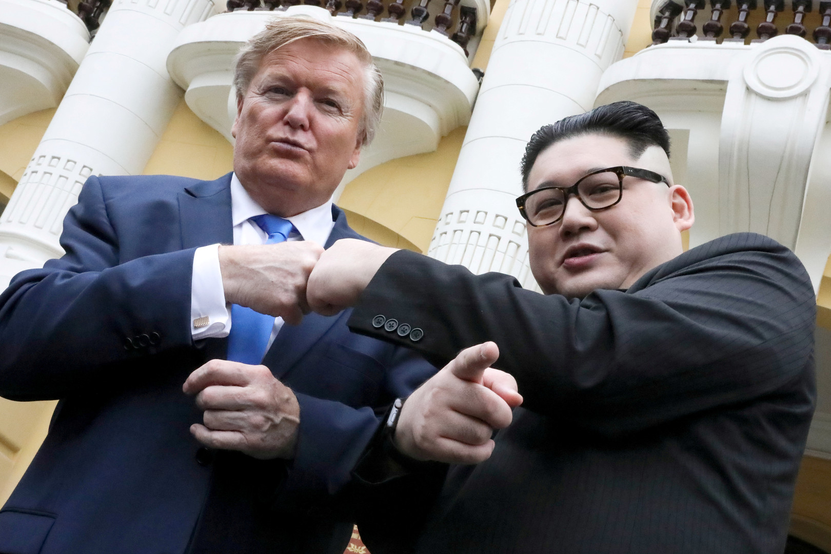 هانوي - وكالات- احتجزت الشرطة الفيتنامية مؤقتا شبيهي الرئيس الأمريكي دونالد ترامب وزعيم كوريا الشمالية كيم جونغ أون قبيل القمة الثانية بين الزعيمين، التي ستنظم في العاصمة هانوي الأسبوع المقبل.