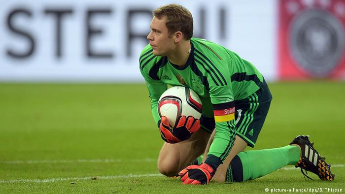 واستدعى يواخيم لوف، المدير الفني للمنتخب الألماني، كيفن تراب حارس مرمى باريس سان جيرمان الفرنسي ليعوض غياب نوير. ويضم المنتخب الألماني بالفعل حارسي المرمى مارك-أندري تير شتيغن (برشلونة الأسباني) وبيرند لينو (باير ليفركوزن).