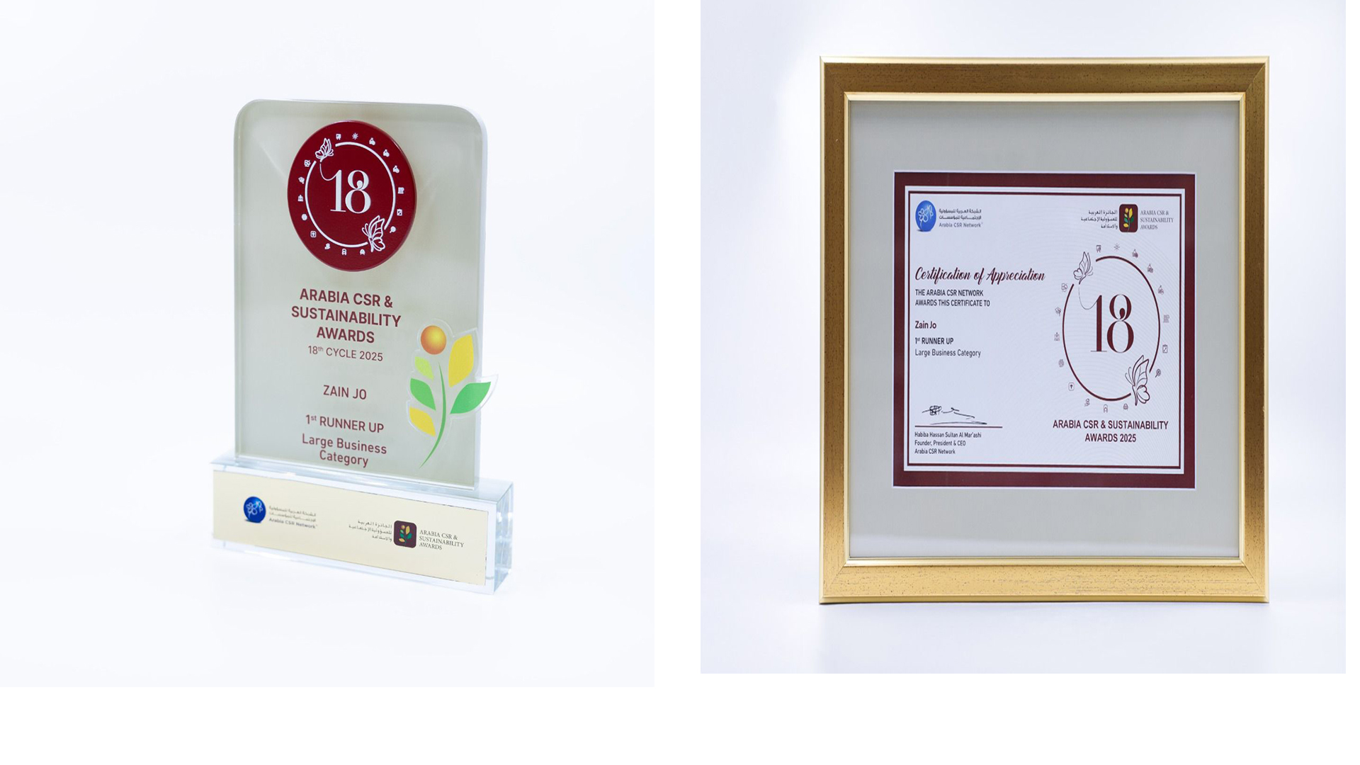 وكونها من أوائل الشركات الوطنية التي تبنّت الاستدامة ضمن استراتيجيتها؛ تُوّجت شركة زين الأردن بجائزة الاستدامة والمسؤولية المجتمعية العربية لعام 2025 عن فئة الشركات الكبرى، إذ جاء التتويج ثمرة باع طويل اعتمدت خلاله الشركة الاستدامة كركيزة أساسية في تخطيطها الاستراتيجي محوّلة بذلك كافة برامجها ومُبادراتها إلى نموذج متكامل يُحتذى به.