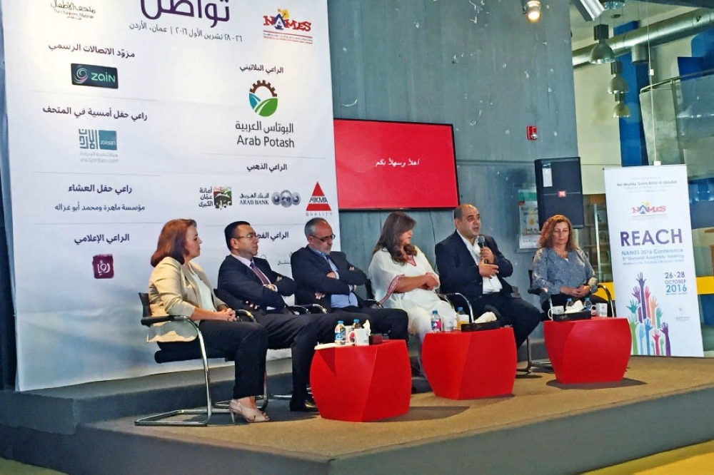 عمان - نظم متحف الأطفال الأردن ظهر أمس مؤتمرًا صحفيًا للإعلان عن استضافة الأردن للمؤتمر الخامس لرابطة المراكز العلمية لشمال إفريقيا والشرق الأوسط (NAMES 2016) المزمع إقامته في 26-28 تشرين الأول المقبل بعنوان «تواصُل» بحضور مديرة المتحف ورئيسة رابطة المراكز العلمية لشمال إفريقيا والشرق الأوسط السيدة سوسن الدلق، وعدد من ممثلي الشركات والهيئات الراعية والذي يقام تحت رعاية جلالة الملكة رانيا العبدالله.