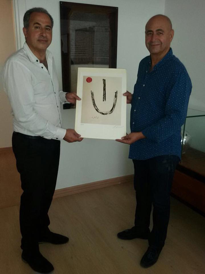 عمان – تسلم مدير عالم المتحف الوطني الاردني للفنون الجميلة الدكتور خالد خريس لوحة جرافيكيه للفنان الاسناني انتونيو كامارو وقام بتسليمها الزميل الفنان رسمي الجراح بتكليف من المصمم الفنان جريس مشربس المقيم في فلنسيا باسبانيا وهو صديق الفنان كامارو .