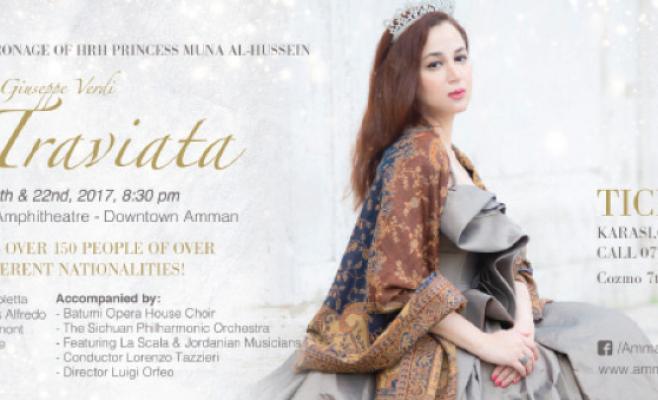 الدورة الأولى من مهرجان عمان الأوبرالي تحظى برعاية الأميرة منى الحسين، وبإنتاج كامل لأوبرا لاترافياتا للمؤلف الموسيقي الإيطالي فيردي، وسيقام هذا العرض التاريخي في مسرح المدرج الروماني بالعاصمة عمّان الذي يبلغ عمره 2000 سنة.