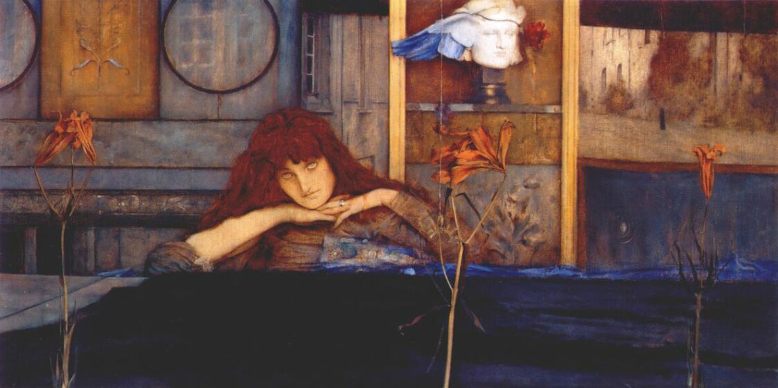 وقد تذكّرت كلام بيرنستاين وأنا أتأمّل هذه اللوحة للرسّام البلجيكيّ فرناند كينوبف. كان كينوبف فنّانا رمزيّا، وقد أحبّ الأدب منذ سنّ مبكّرة وانجذب لأعمال الكتّاب الفرنسيين خاصّة. ثم قرّر أن يدرس الرسم.