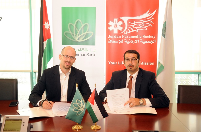 عمان - وقع بنك القاهرة عمان مع الجمعية الأردنية للإسعاف اتفاقية يتم بموجبها تسهيل عملية تسديد وتقسيط الرسوم لمتلقي خدمة التدريب من الجمعية الأردنية للإسعاف وخاصة في البرامج الطويلة المحلية والدولية كدبلوم الإسعاف الجوي عبر الخدمات المصرفية التي يقدمها بنك القاهرة عمان.