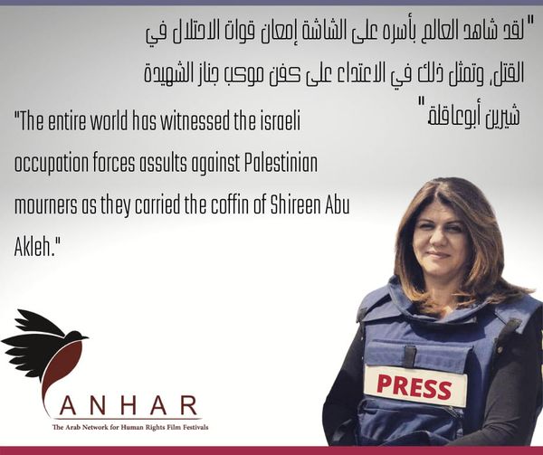 عمان - بيان صادر عن الشبكة العربية لأفلام حقوق الإنسان – أنهار – حول اغتيال الصحفية الشهيدة شيرين أبو عاقلة