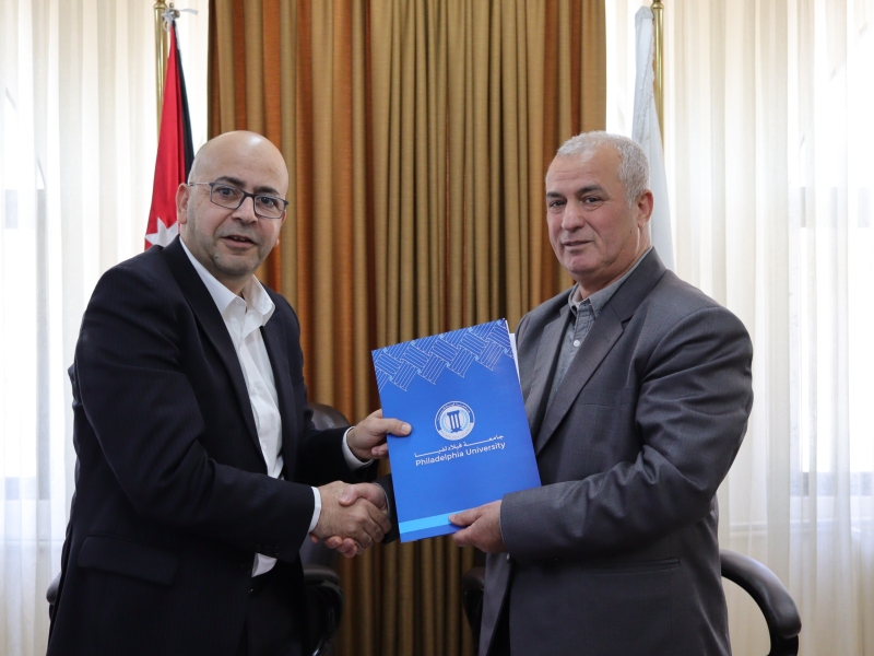 ووقع المذكرة عن جامعة فيلادلفيا رئيسها الأستاذ الدكتور عبدالله الجراح، وعن شركة المدن الصناعية الأردنية مديرها العام السيد عدي سعد عبيدات
