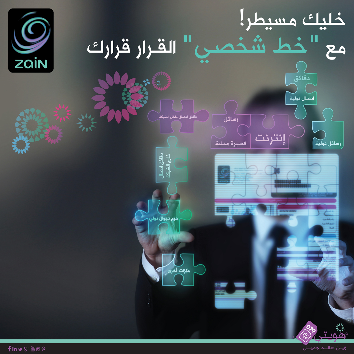 وسيتمكن مشتركو خط "شخصي" من تصميم حزم الخطوط الخاصة بهم، بما يخدم التحكم باستهلاكهم وبالتالي تعظيم الاستفادة من خدمات الاتصال والإنترنت، ويمكنهم إختيار الحزم المتنوعة أو تعديلها عن طريق زيارة أي من معارض زين المنتشرة في كافة أنحاء المملكة، أو من خلال الاتصال بمركز خدمات المشتركين على الرقم 1234، أو عبر تطبيق زين للهواتف الذكية (Zain JO).