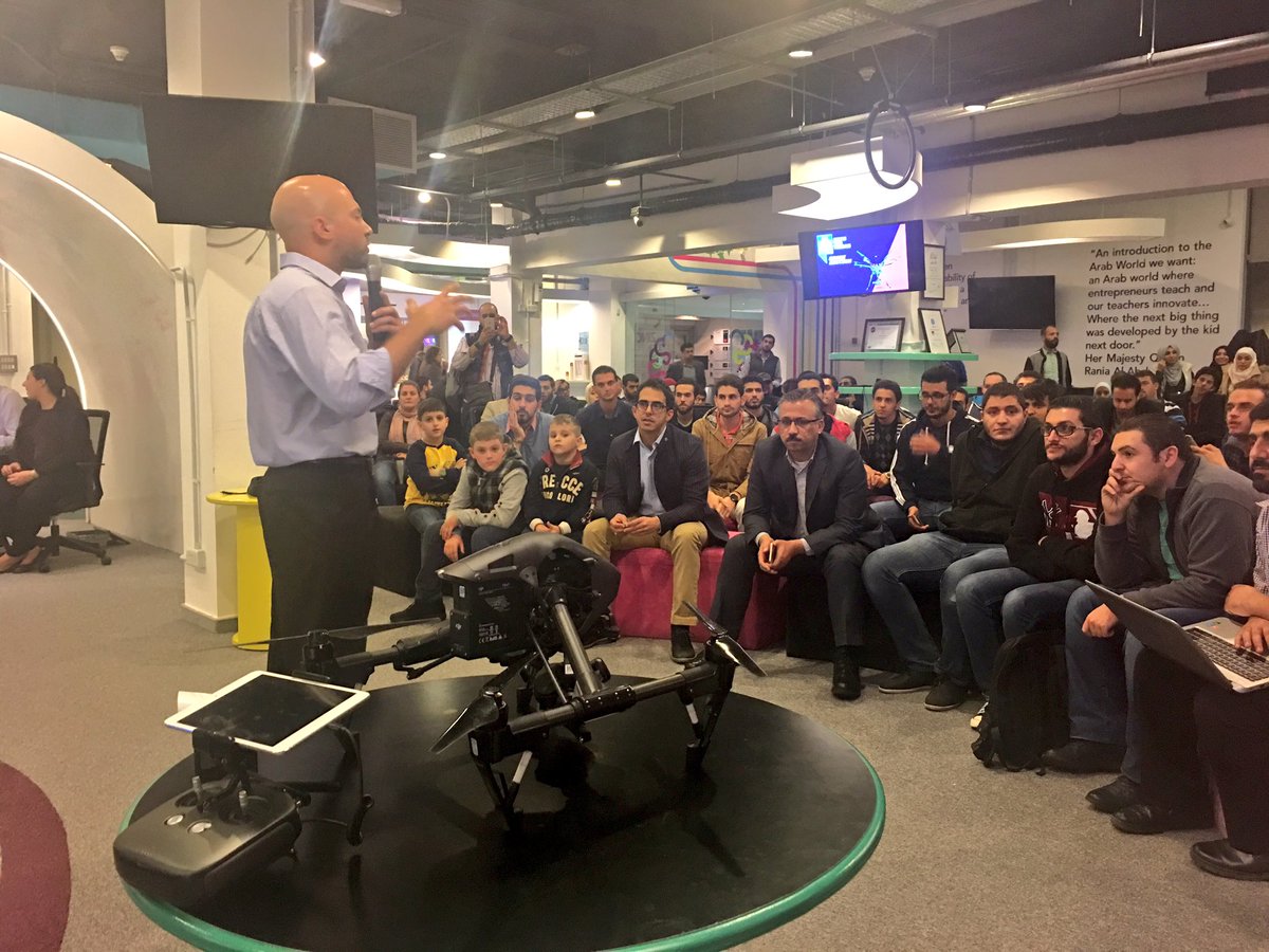 كما قام المتحدثين بمناقشة أهم الاستخدامات التجارية والترفيهية والعملية لهذه التقنية الحديثة ومنهم: فؤاد جريس ولؤي ملاحمة المؤسسين لـمبادرة صقر 1، ويوسف وادي مؤسس الشركة الناشئة Nestrom، وأشرف عمايرة من DroneDel، وAlexander Paulausson من AMVKO، حيث شاركوا الحضور بخبراتهم العملية في مجال طائرات الدرون كما قاموا باستعراض حي للطائرات وأثاروا أجواء الحماس حين حلقت الطائرات في أرجاء المنصة خلال شرح المتحدثين لكيفية إقلاع الطائرات وتوجيهها عن بعد.
