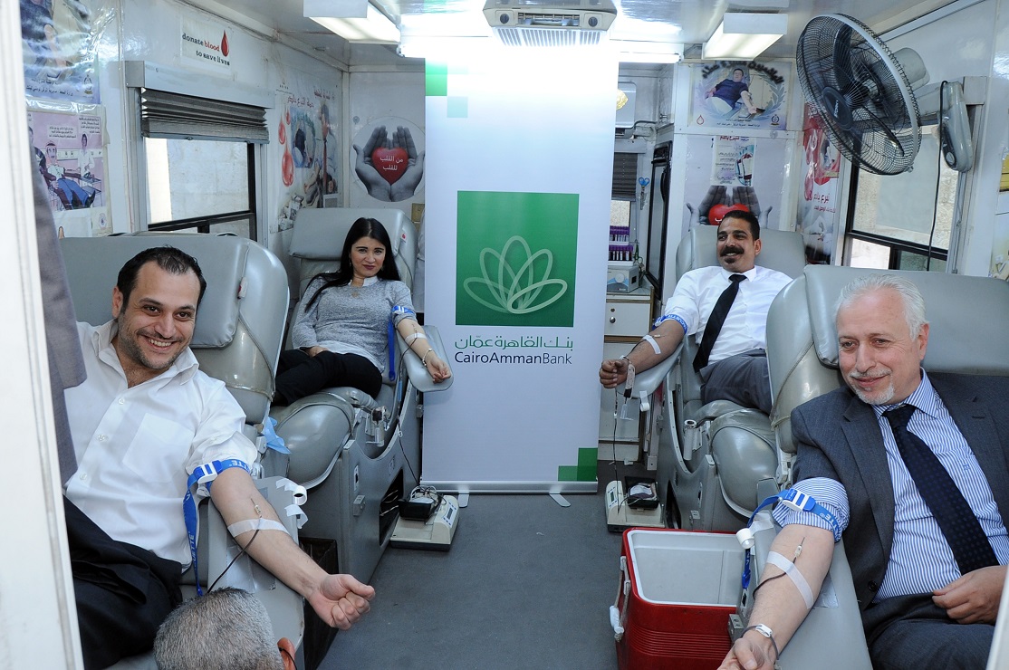 عمان - نفذ بنك القاهرة عمان حملة للتبرع بالدم شارك فيها موظفي البنكواشرف على هذه الحملة فريق طبي من بنك الدم استقبل المتبرعين في قاعة الاستقبال التابعة لمبنى الادارة العامة في وادي صقرة وايضا سيارة متنقلة خصصت لهذه الغاية.
