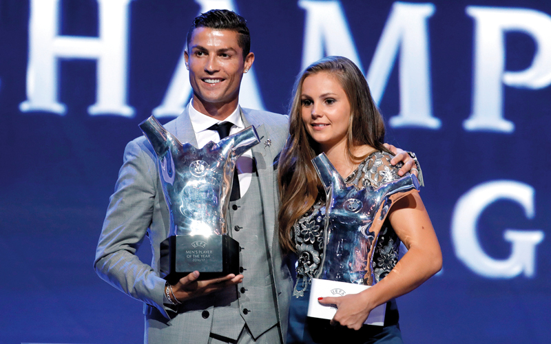 وتبدأ فعاليات الأدوار الفاصلة في 13 فبراير المقبل، فيما تقام المباراة النهائية للبطولة على الاستاد الأولمبي بالعاصمة الأوكرانية كييف في 26 مايو 2018. وأجريت القرعة طبقاً لنظام جديد يطبق للمرة الأولى هذا الموسم، حيث ضم المستوى الأول الفرق التي توجت بلقب بطولات الدوري المحلية، والتي تأتي بلدانها في المراكز السبعة الأولى بتصنيف «المعامل» الأوروبي على مستوى البلدان وليس الأندية، وقد تصدر ريال مدريد حامل لقب البطولة الأوروبية فرق المستوى الأول. وشهد حفل القرعة، أمس، اكتساح لاعبي ريال مدريد لجوائز اللاعبين، حيث توج النجم البرتغالي الدولي، كريستيانو رونالدو، بجائزة الاتحاد الأوروبي لكرة القدم (يويفا)، لأفضل مهاجم بدوري الأبطال خلال الموسم الماضي، وتُوج الكرواتي لوكا مودريتش، لاعب خط وسط ريال مدريد الإسباني، بجائزة الاتحاد الأوروبي لكرة القدم (يويفا) لأفضل لاعب خط وسط، وكذلك زميلهما النجم سيرخيو راموس، مدافع ريال مدريد الإسباني، بجائزة «يويفا» لأفضل مدافع خلال الموسم الماضي.