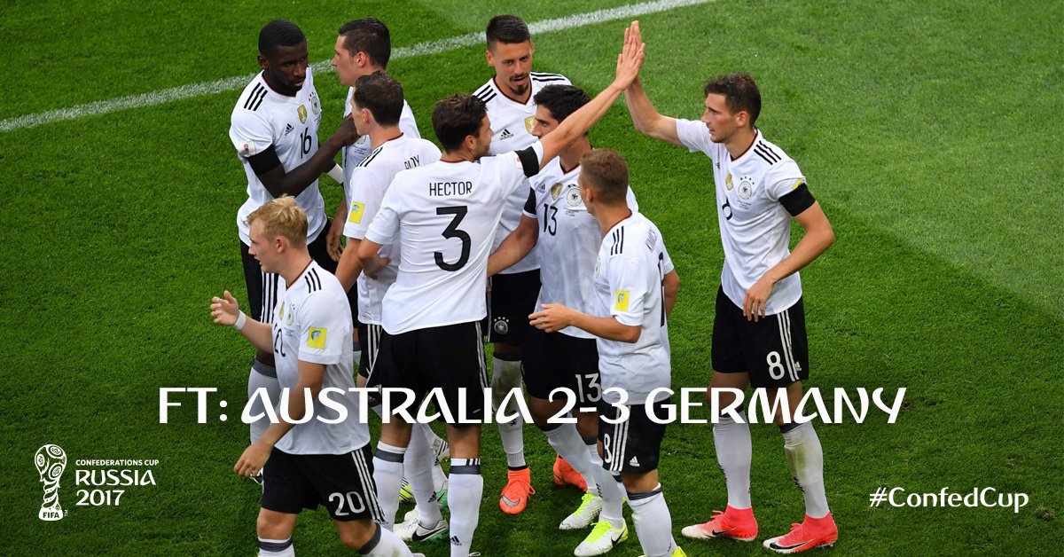 قازان - حقق المنتخب الألماني فوزا صعبا على نظيره الأسترالي 3-2 ، اليوم الاثنين، على ملعب فيشت في مدينة سوتشي، في بداية مشوار الفريقين في المجموعة الثانية لكأس القارات روسيا 2017.