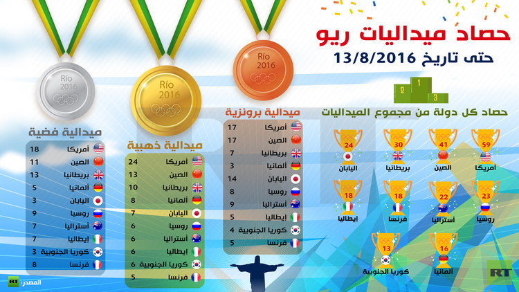 اخر احصائيات حصاد ميداليات ريو