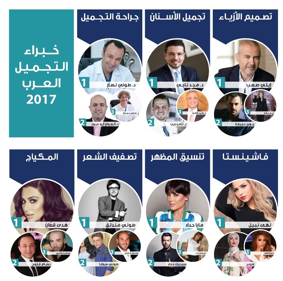 من جهته قال المستشار طوني صعب رئيس قسم الأبحاث " جاء الاختيار هذا العام وفق اسس اضافية مختلفة عن تقارير الأعوام الماضية , حيث تم دعوة الخبراء من نفس المجال الى الاختيار والمشاركة في صنع القرار , حيث تلقينا ترشيحات من قبل اكثر من 600 خبير وطبيب عربي لاختيار قائمة تتمثل ب 21 شخصية عربية في قائمة خبراء الجمال 2017
