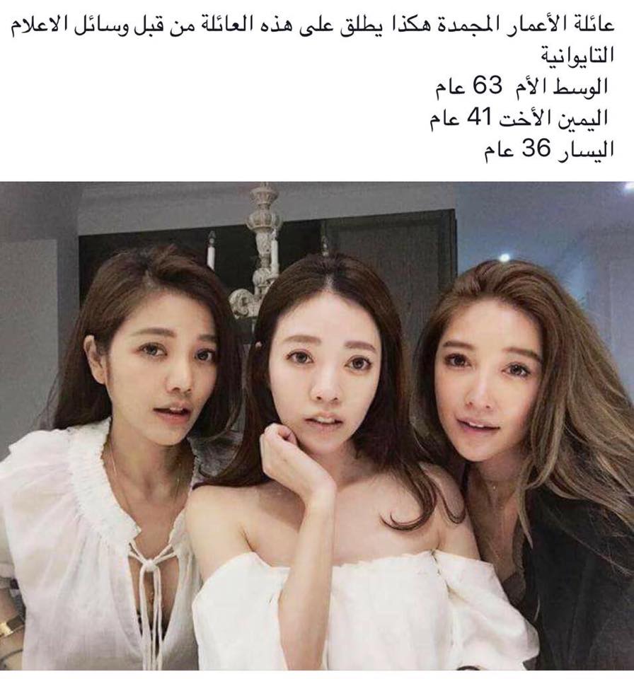 طوكيو - شووفي نيوز - تعرف العائلة اليابانيه بانها العائلة الشابه كل من ينظر إلى سيدات هذه العائلة يظن أن جميع نسائها في العشرين من أعمارهن، بالرغم من أن الأم تبلغ 63 عاماً، والابنة الكبر تبلغ 41، والوسطى 40 والصغرى 39، الأمر الذي جعلهم يكتسبن شهرة واسعة في تايوان، وشجع وسائل الإعلام العالمية على إطلاق لقب «عائلة الأعمار المجمدة» عليهم.
